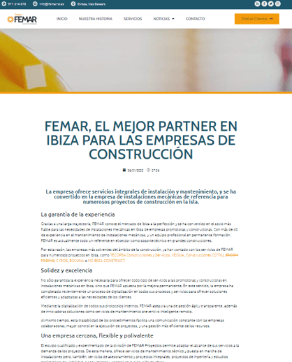 Mantenimiento y optimización SEO. Creación y desarrollo de Blog. Actualización contenidos y aplicación de estilos corporativos.
